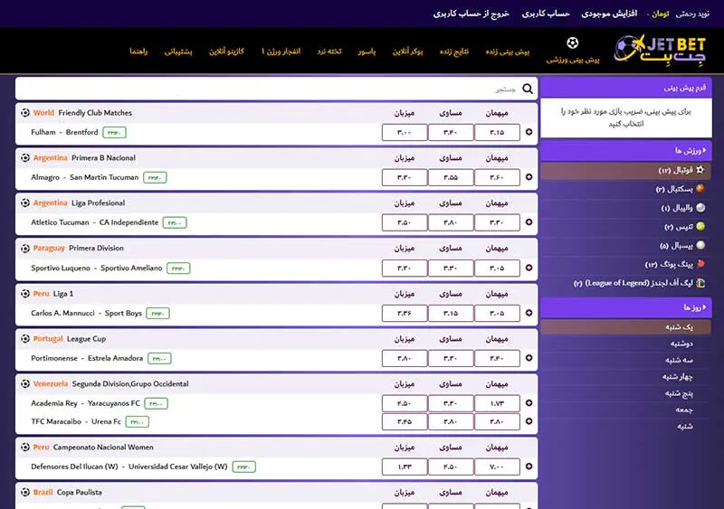 | کمبود گزینههای شرط بندی | بررسی سایتهای مختلف برای تنوع گزینهها |